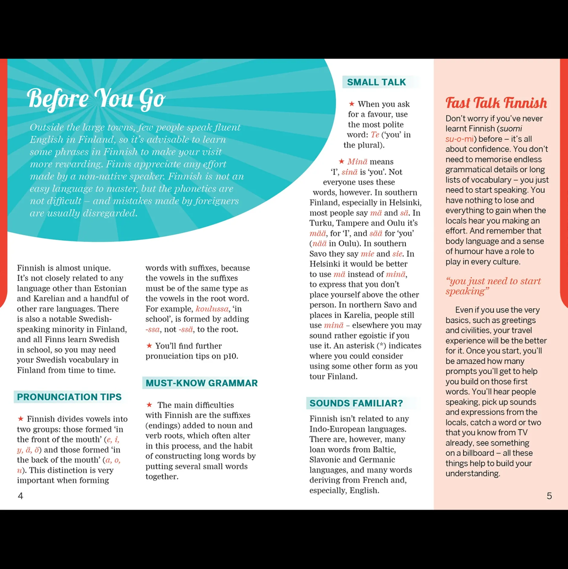 Gain conversational confidence in Finland with Fast Talk Finnish! This concise language guide will teach you essential phrases for making friends, receiving great service, discovering unique travel experiences, asking for directions, ordering food, and finding souvenirs. Quick, easy, and fun to use, Fast Talk Finnish features essential words and phrases, simple pronunciation guides, and expert tips.