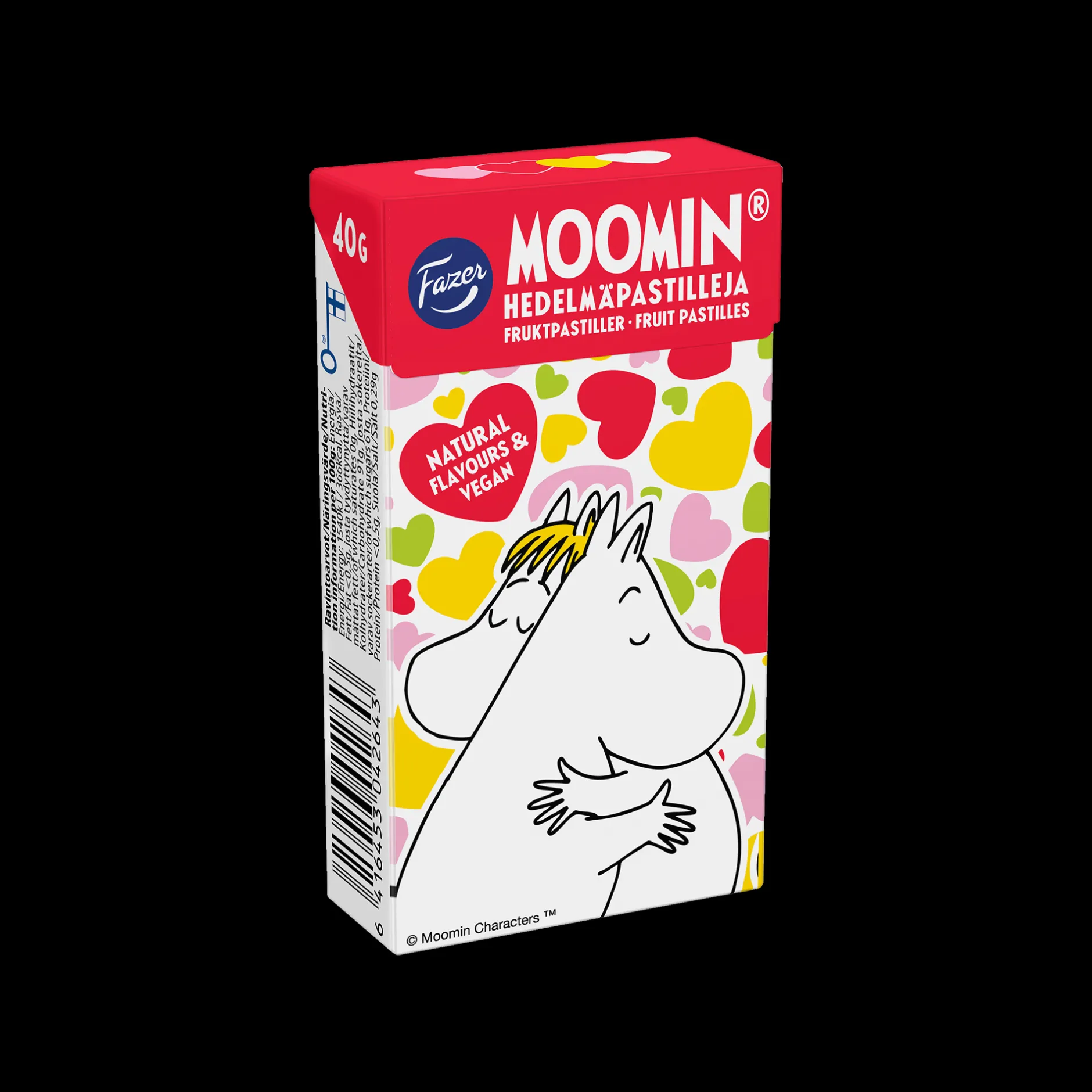 These Fazer Moomin Fruit Pastilles are the perfect way to show someone you care! These little heart-shaped pastilles come in four delicious flavors: strawberry, forest berries, pear and orange.