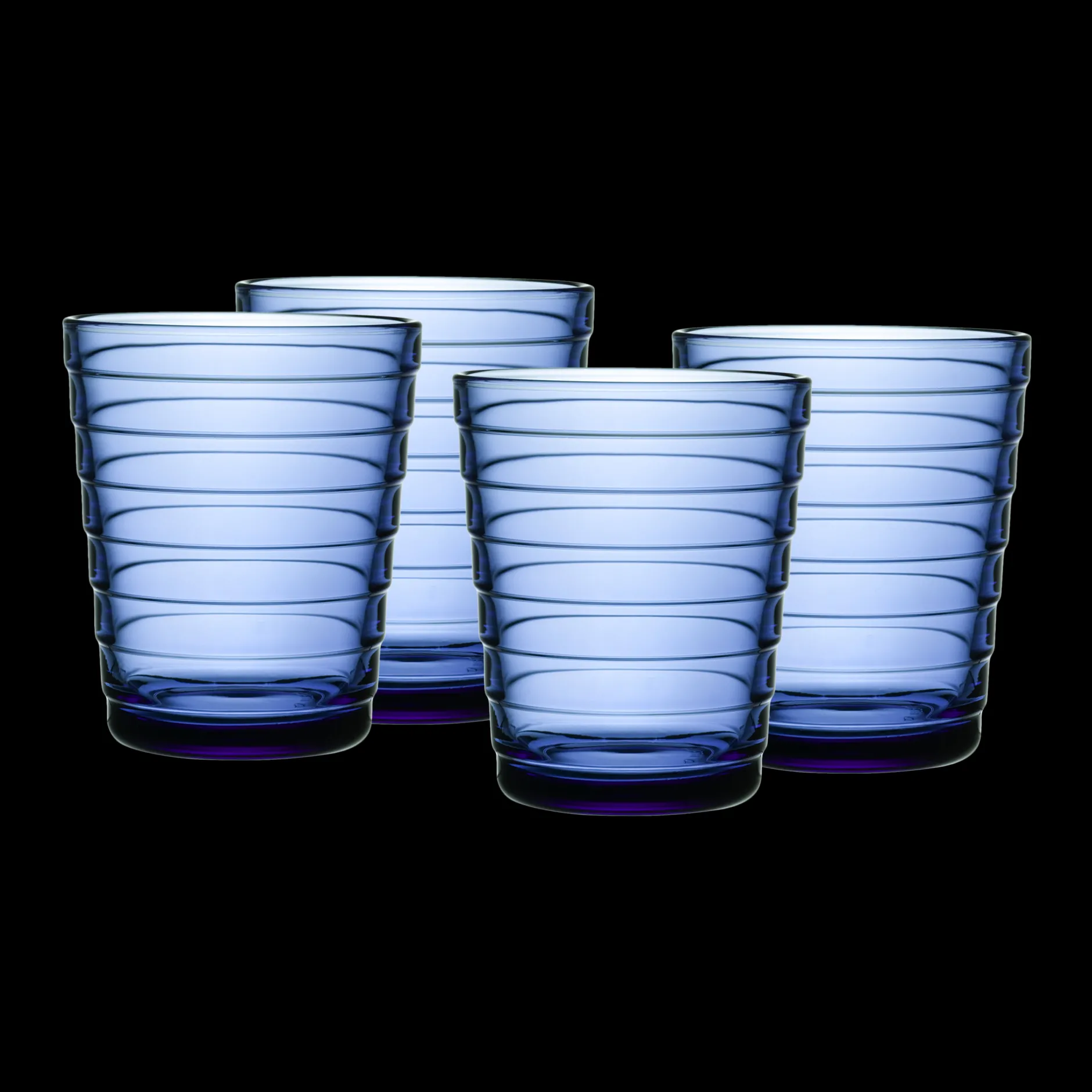 Elevate your table with the timeless elegance of iittala’s Aino Aalto Ultramarine Blue Medium Tumblers. Designed in 1932 by Finnish architect Aino Aalto, this set of four showcases an iconic pressed glass design inspired by the gentle ripples of water. Crafted at the renowned Iittala Glass Factory, the ridged texture adds both visual appeal and a comfortable grip.