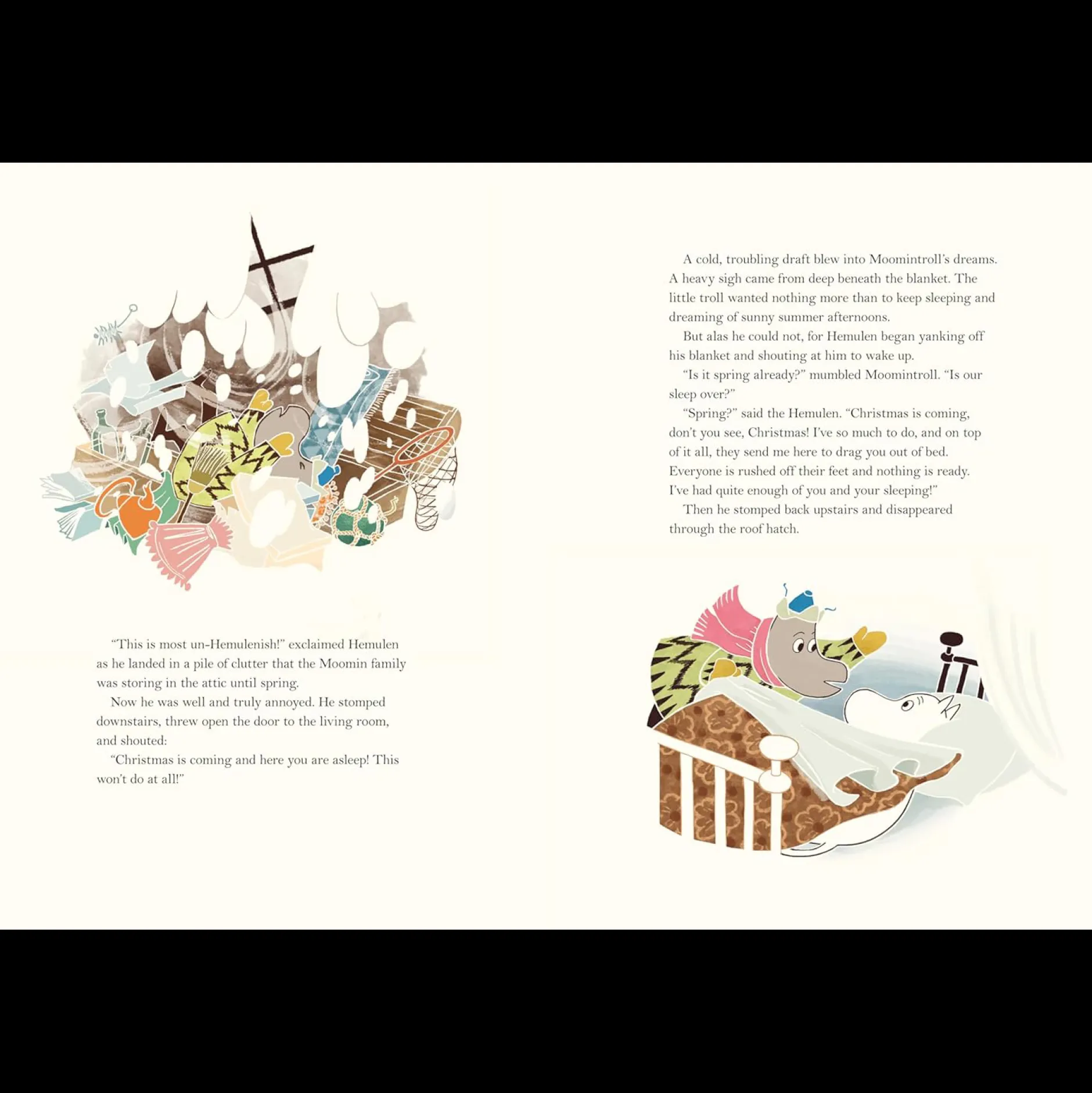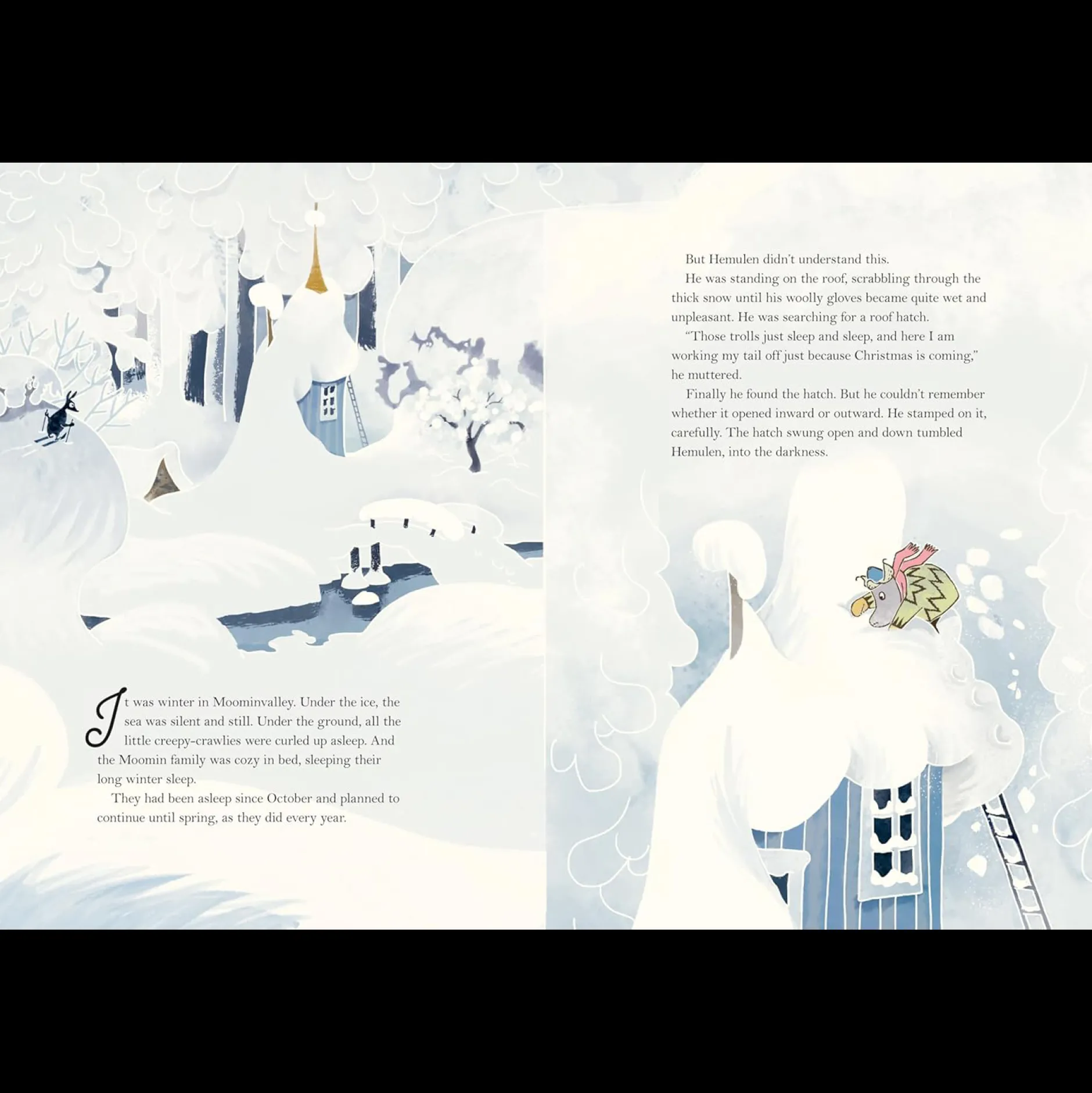 A brilliantly-rendered retelling of Tove Jansson’s iconic fable The Fir Tree, capturing the moment when the Moomin gang rouses from their Long Winter Nap to discover Christmas is upon them — although they’ve nary a clue what it’s all about! But as they get ready for the holiday, the true meaning of Christmas is revealed.