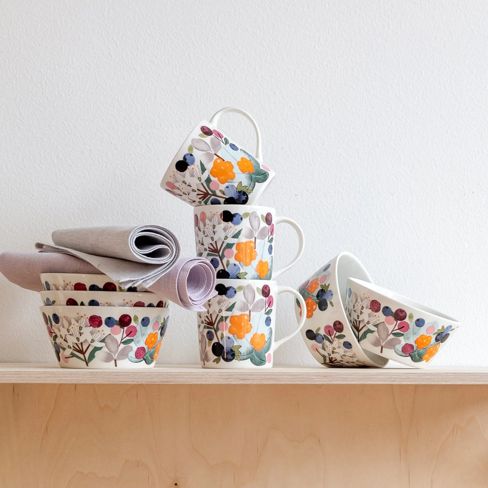 Immerse yourself in the enchanting beauty of the Finnish wilderness with the Pentik Metsämarja Soup / Cereal Bowl, a delightful addition to the Metsämarja (Forest Berry) series designed by Lasse Kovanen. Adorned with delicate watercolor illustrations, this captivating pattern pays homage to the abundance of Northern berries, including cloudberries, cranberries, and blueberries, as well as the lush foliage of cloudberry leaves and blooming marsh tea.