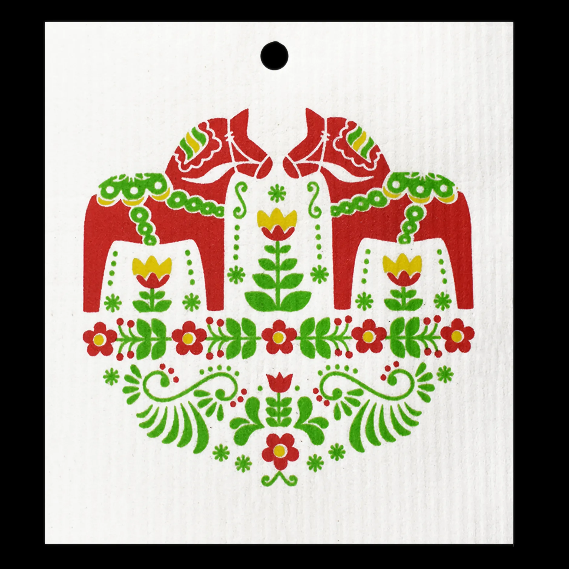 Show some Swedish pride with this Dala horse printed dishcloth. This marvelously absorbent Swedish Dishcloth with Michigan is a wonder in the kitchen. You’ll never want to go back to sponges or regular dishcloths when you see how it works for yourself. Made of earth-friendly odor-resistant materials, 70% cellulose and 30% cotton, these Scandinavian dishcloths are durable (just wash it in your washing machine or top rack of dishwasher). These cellulose dishcloths soften when wet and wash and dry like a dream – they absorb 16 times their weight and once wrung out, the cloth will quick dry.