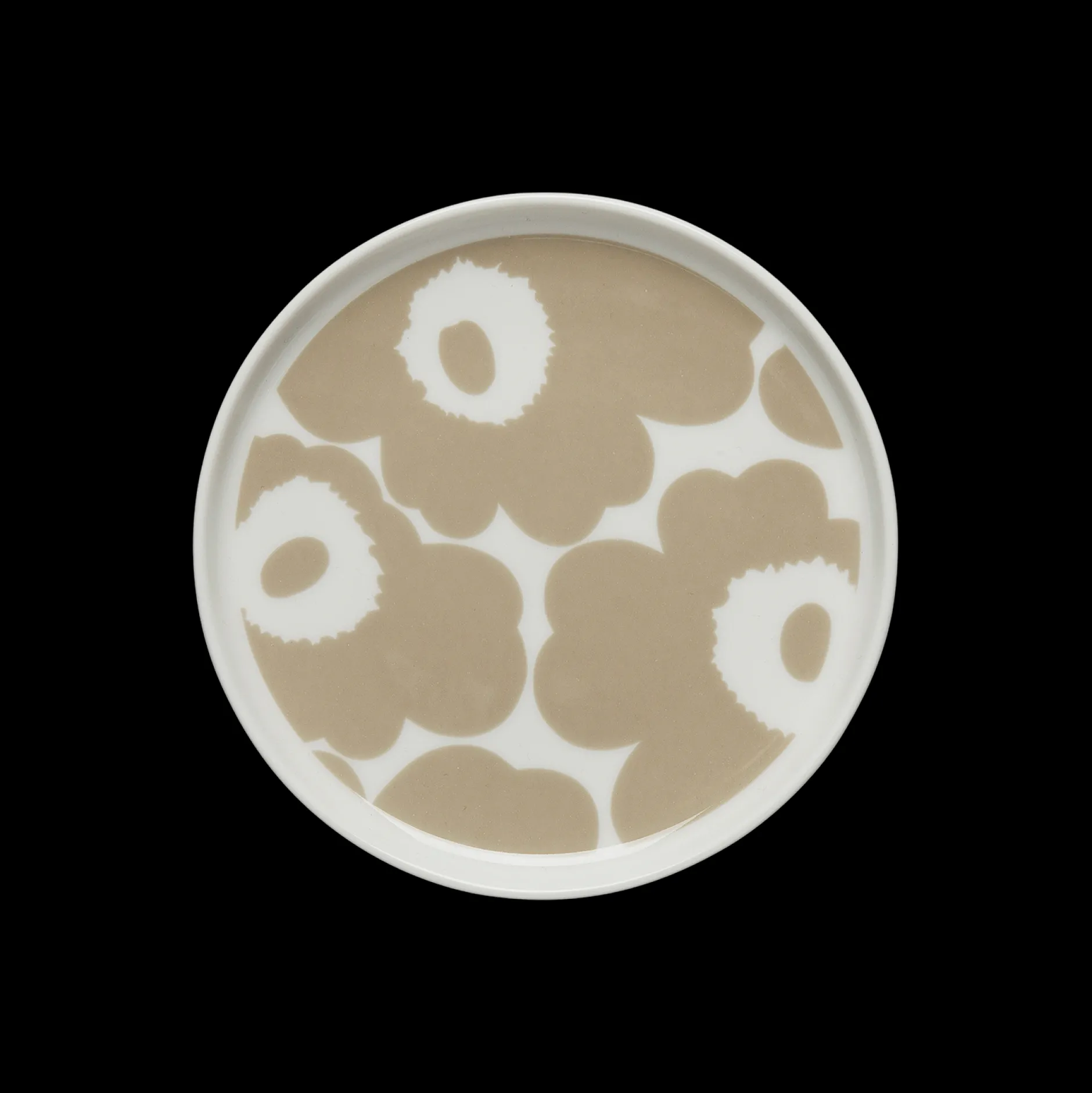 Bring timeless charm to your table with the Marimekko Unikko Snack Plate in white and beige. Featuring Maija Isola’s iconic Unikko floral design from 1964, this small plate celebrates creativity with a soft, understated color palette that complements any setting.
