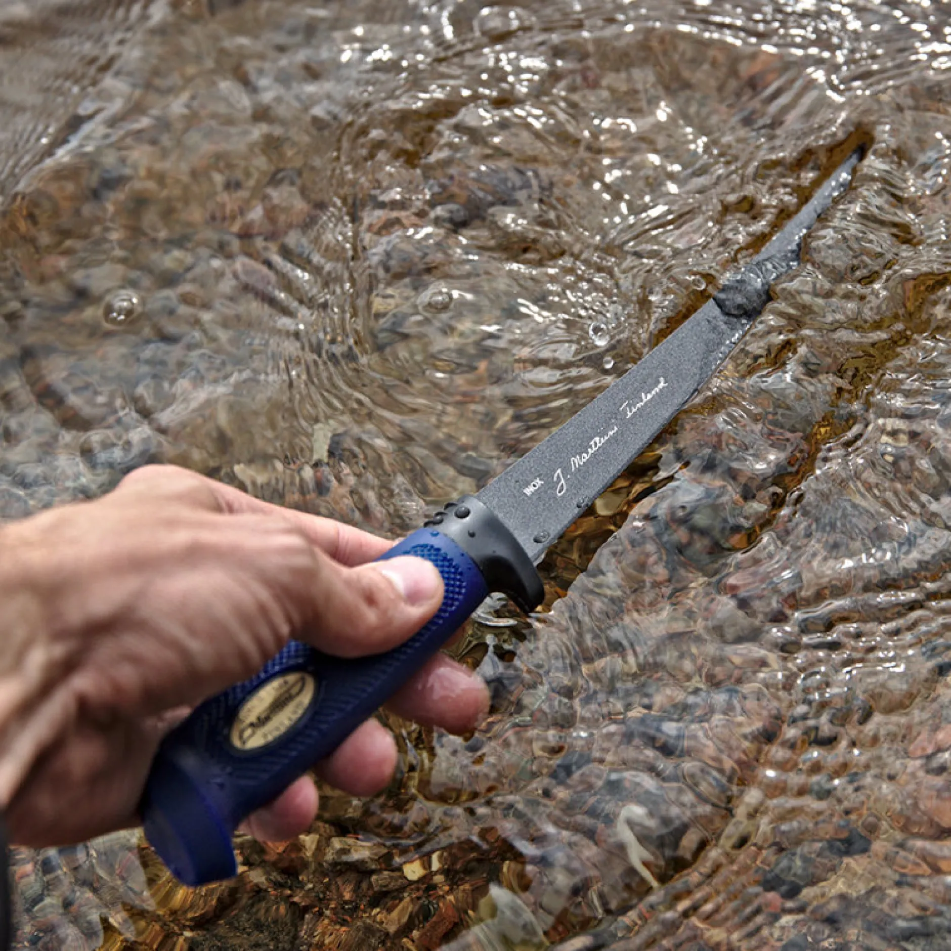 When you’re working with freshly caught fish—or just prepping dinner—you want a knife that feels like an extension of your hand. That’s exactly what the Marttiini Martef Filleting Knife 19 delivers. This Marttiini fillet knife features a flexible 7.5″ stainless steel blade coated in Martef, a specialized treatment that glides through fish with almost no resistance. It’s not just about effortless filleting—Martef also helps resist corrosion and makes cleanup refreshingly simple.