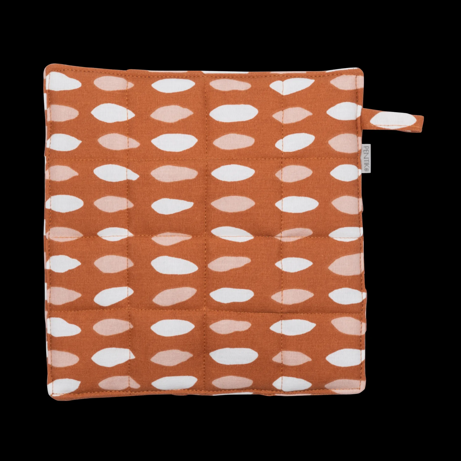 The Manteli (Almond) Pot Holder, designed by Minna Niskakangas, adds a joyful and positive touch to your home decor. Its lively and delightful print is sure to uplift your spirits. Its practical checkered stitching ensures a secure grip while handling hot dishes, and the added hand pocket on the back offers additional support and protection.