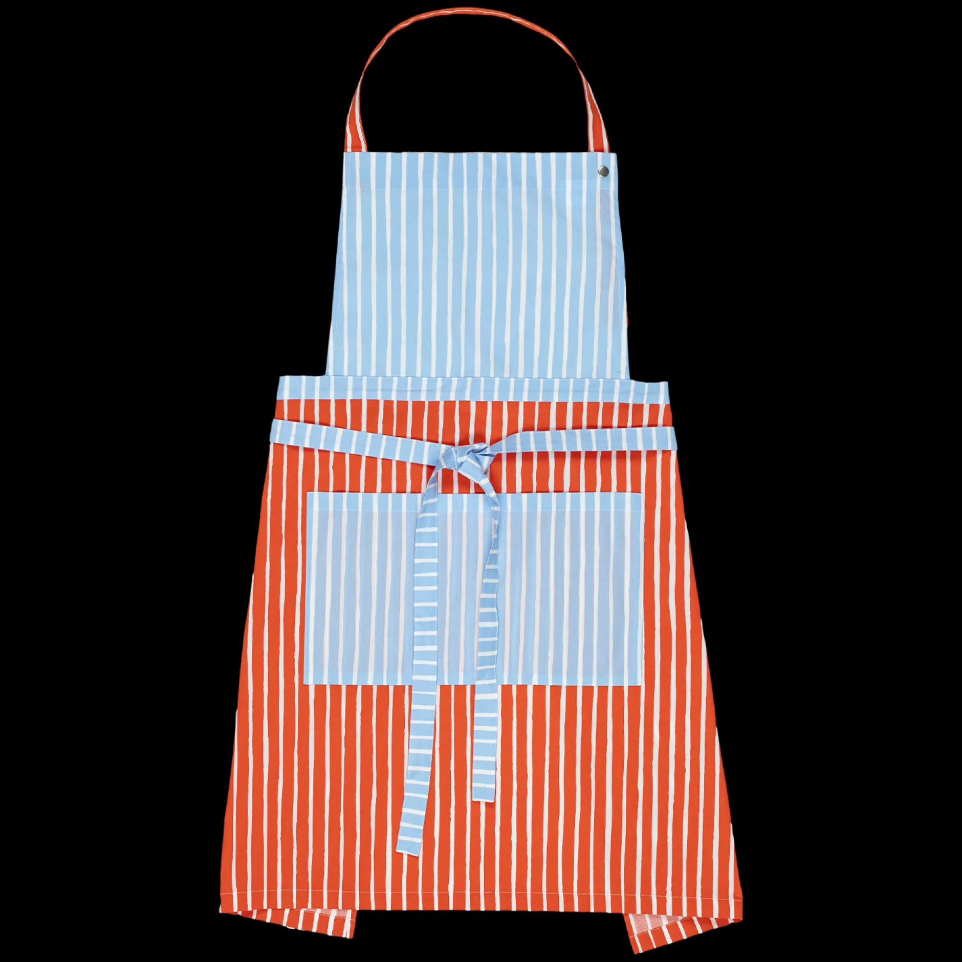 The Marimekko Piccolo Apron brings a splash of vibrant color and timeless design into your kitchen. Featuring the iconic Piccolo pattern, this apron showcases bold stripes painted with vivid brushstrokes in a striking mix of white, tomato red, and light blue. Originally created in 1953 by Vuokko Eskolin-Nurmesniemi, Piccolo’s playful design first appeared on the Jokapoika shirt, forever imprinting itself as a symbol of effortless style.