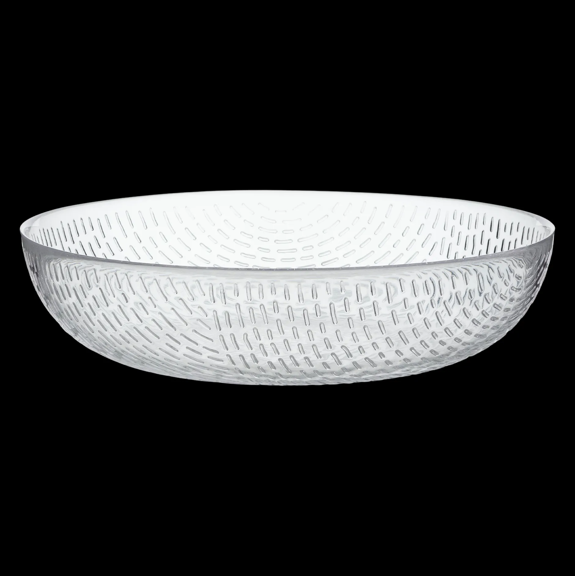The Marimekko Syksy Clear Glass Serving Bowl is expertly crafted from mouth-blown glass, showcasing the beauty of autumn’s natural elements. Designed by Matti Klenell, the bowl features a textured, relief-like surface that captures the essence of autumn rain—from light drizzles to heavy downpours. With a generous 54 oz (1.6 liter) capacity, this bowl is perfect for serving salads, pastas, or even as a centerpiece for fruits or decorative items. Packaged in the Marimekko logo pattern box, this bowl also makes a thoughtful gift. For lasting beauty, hand washing is recommended.