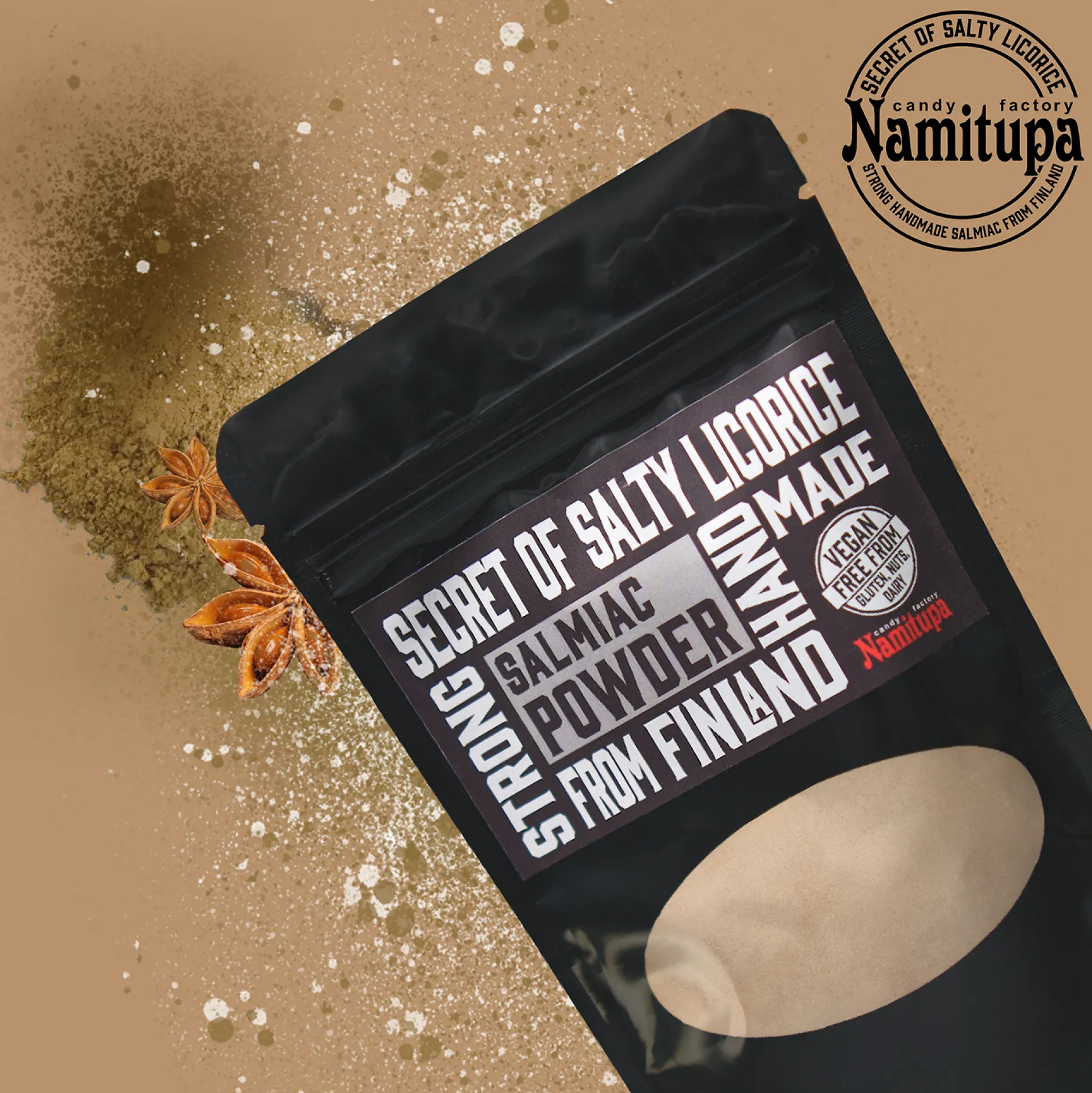 Namitupa Salmiac Powder is a nostalgic treat that harkens back to the days when Finnish pharmacies sold this salty licorice powder nearly a hundred years ago. Today, people use it in various ways, from baking and making ice cream to cooking and even spicing up their booze! No matter how you enjoy it, this powder is a great way to add some salty licorice flavor to your favorite dishes.