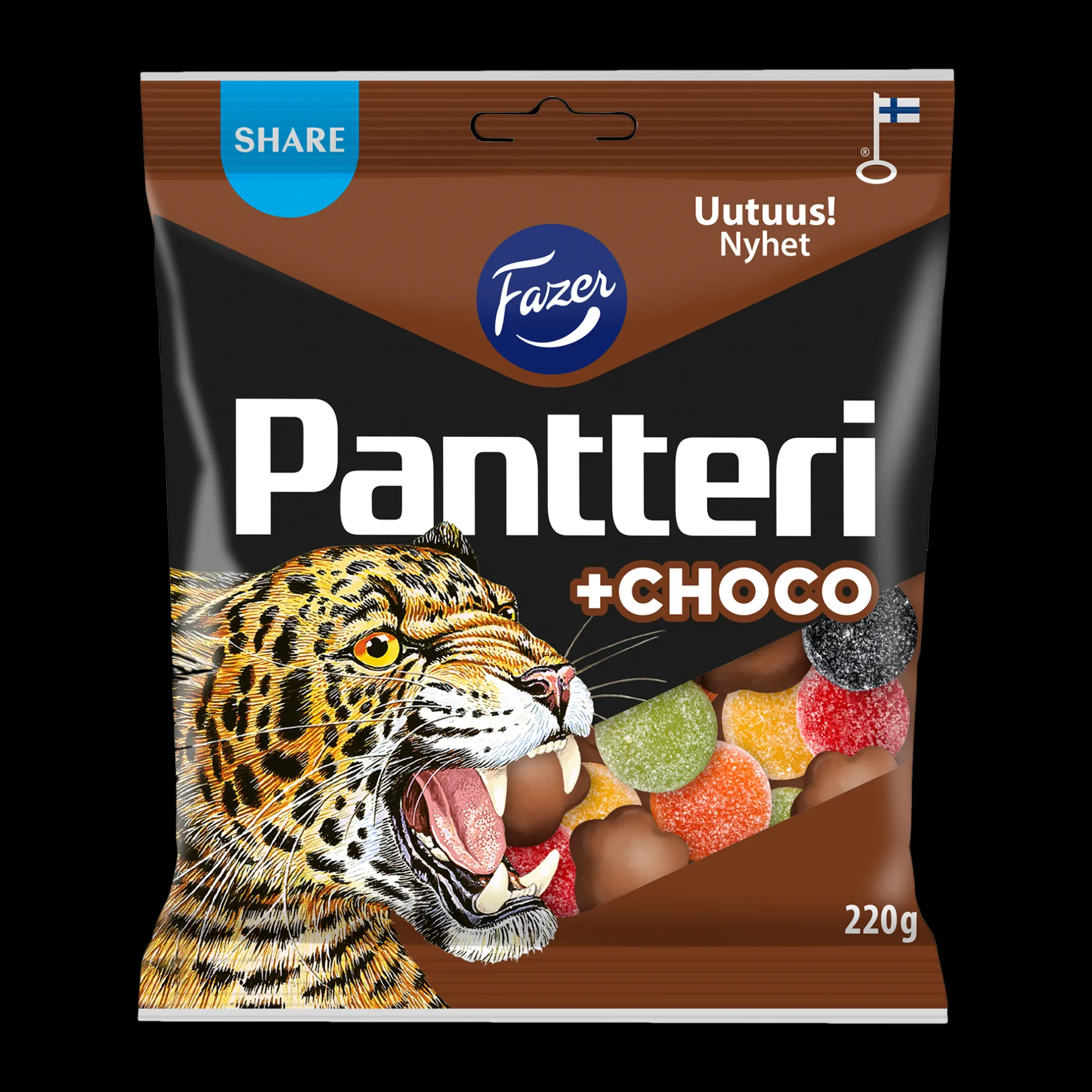 Fazer Pantteri + Choco Sweets Mix is a delightfully wild combination that brings together the best of salty, sweet, and chocolatey flavors. Known for its bold and iconic Pantteri (Panther) licorice, Fazer introduces a new twist with irresistible chocolate-coated paws, each hiding a deliciously salty licorice center. This playful mix also includes the fruity burst of classic Pantteri gummies and the soft, salty richness of Musta Pantteri licorice, creating a perfect balance of flavors and textures.