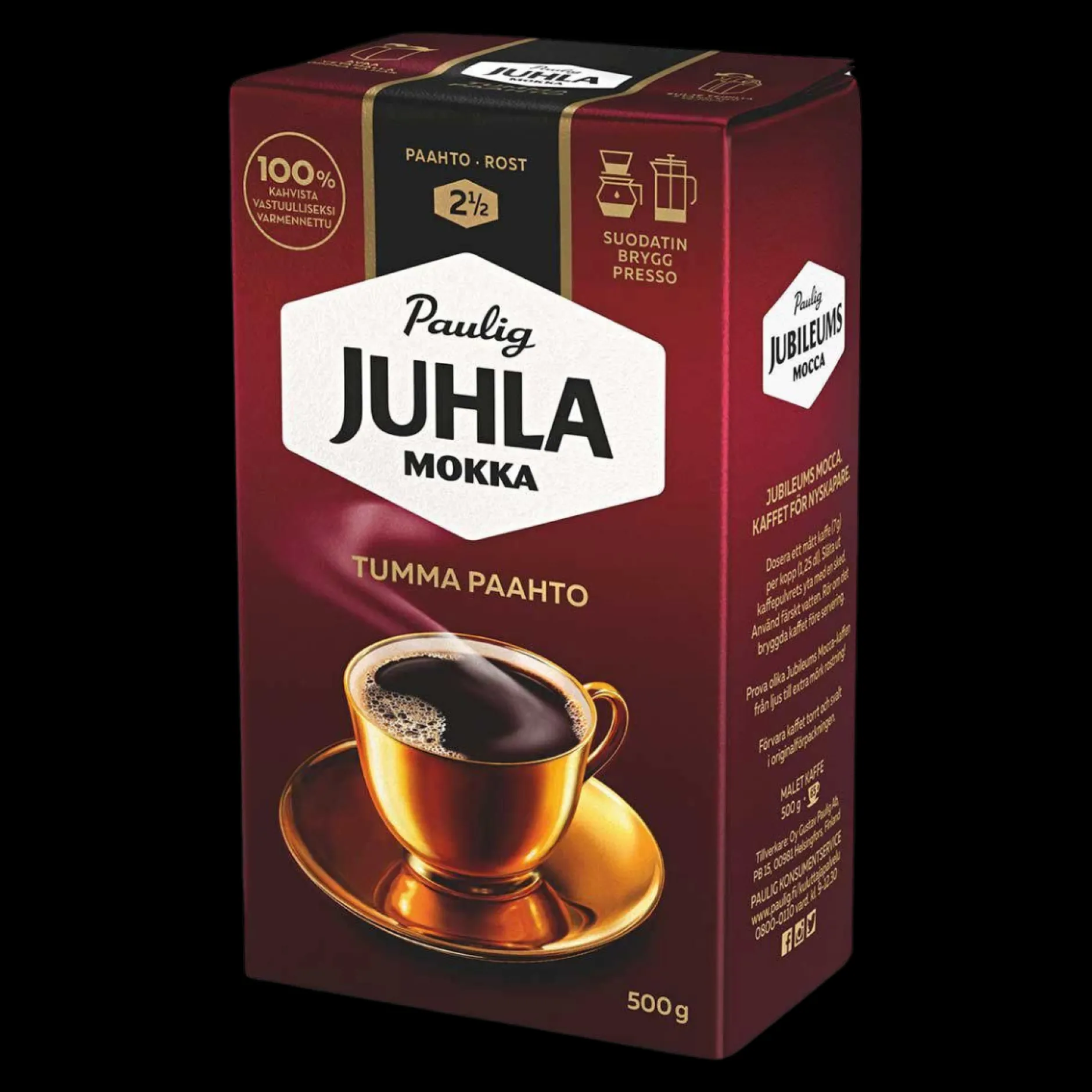 Vacuum sealed for freshness and ground for filter coffee, this 500g bag ensures you have plenty of your favorite Paulig coffee to enjoy. Ideal for those who seek a lighter-dark roast, Juhla Mokka coffee brings the perfect harmony of rich flavors with just the right amount of smoothness. Whether you’re enjoying a quiet morning or sharing a cup with friends, this Finnish coffee is sure to elevate your coffee experience.
