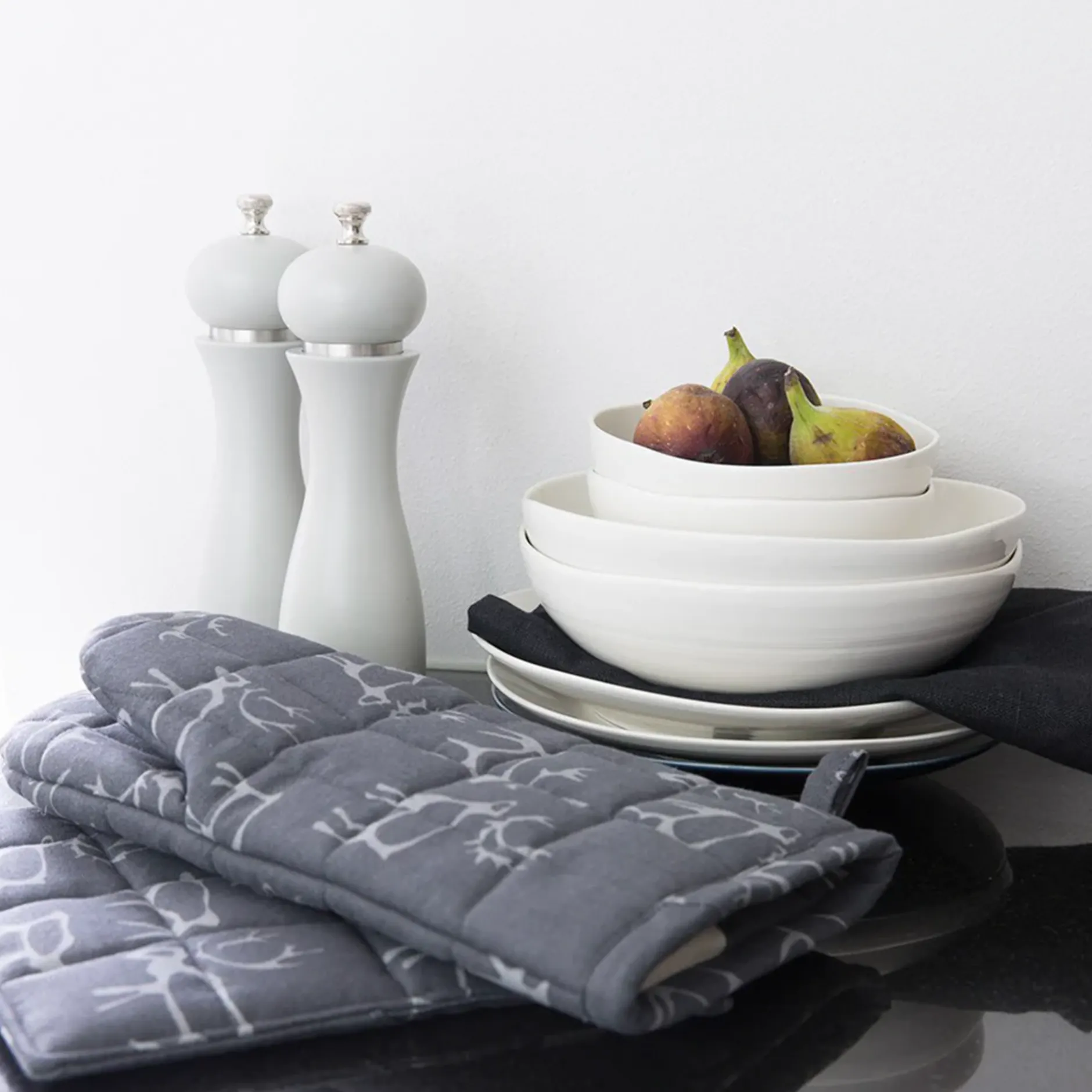Reindeer are occasionally spotted near Pentik’s Posio facility, and sometimes even peeking in through the windows. People from far and wide come to view these magnificent animals. Meanwhile, the Saaga oven mitten is crafted from 100% cotton and is designed to provide excellent heat protection in the kitchen while handling hot dishes.