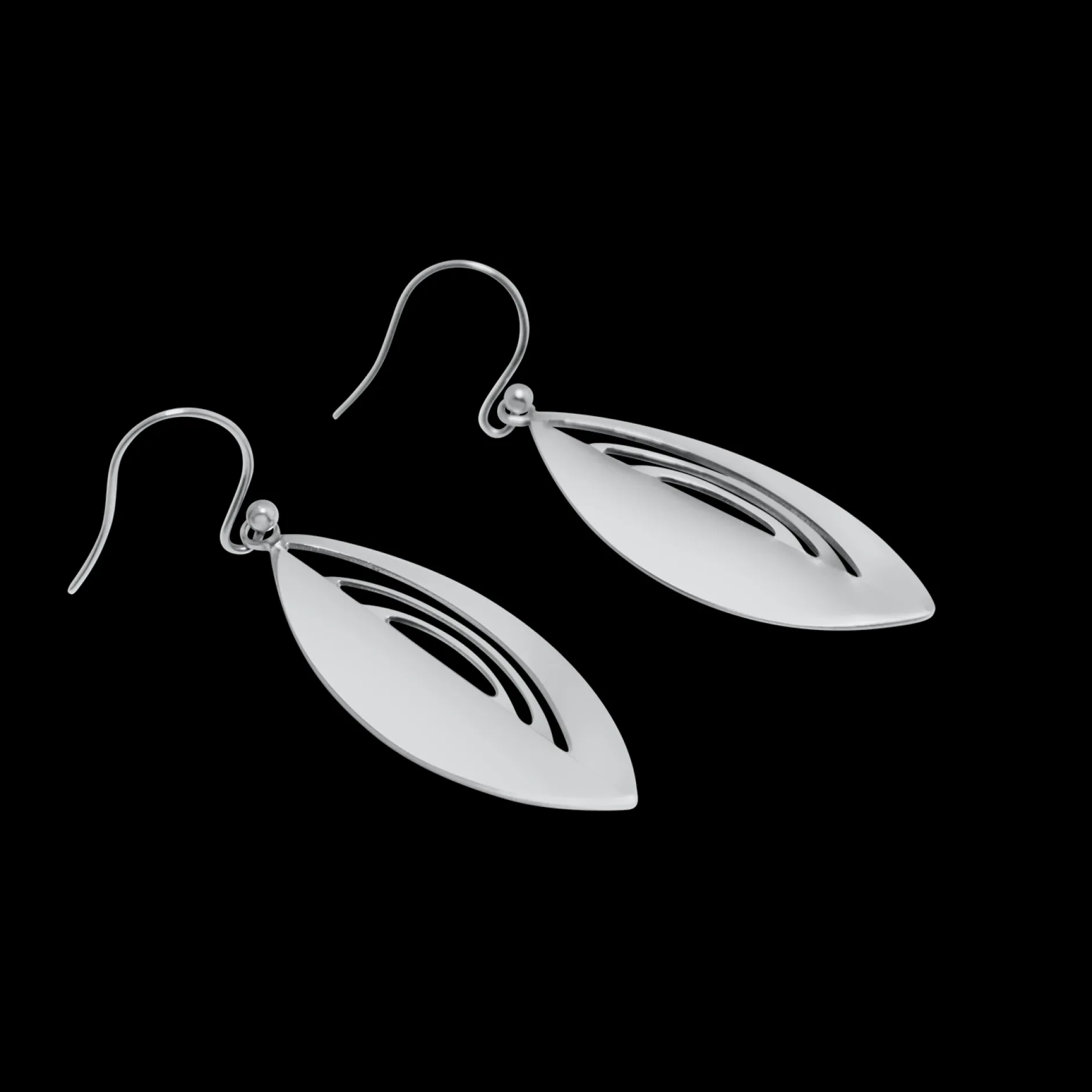 The decorative parts of the Leaf Earrings are hand-polished to a mirror-clear quality on one half and the other half is brushed to create a unique look. The diameters of the decorative parts are 1.38″ (35 mm). The hooks of the earrings are made of surgical steel.