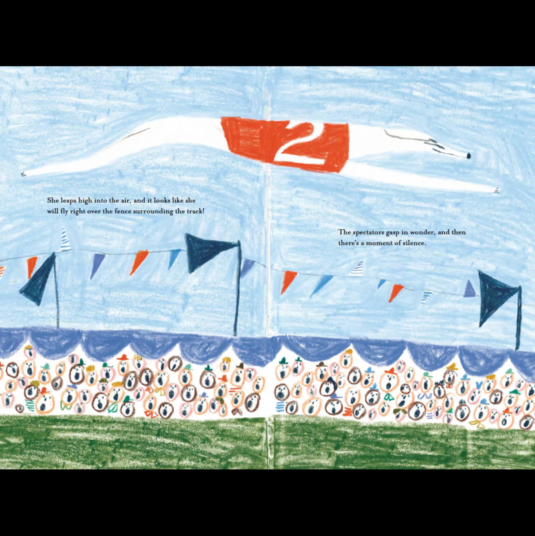 Rosie dreams of forests, meadows, hares, and freedom. Trapped at the racetrack, she sprints in endless circles – until one day, Rosie makes a fearless beeline to the enormous world beyond the track. Scared and a little excited too, Rosie runs through shadowy forests, a circus, a bustling train station, and even takes a quick dip alongside a ferry. She keeps running through small towns and whirling cities, observing the gentle, giddy moments of passersby. Readers will find peace in a private look at a man watering his plants, or a jolt of happiness at a long-snouted dog wearing a cap on a train. A book about taking in the wide world around you, Rosie Runs beckons young readers to rediscover their favorite hobbies and passions, and revel in the joy of playing and being among new friends.