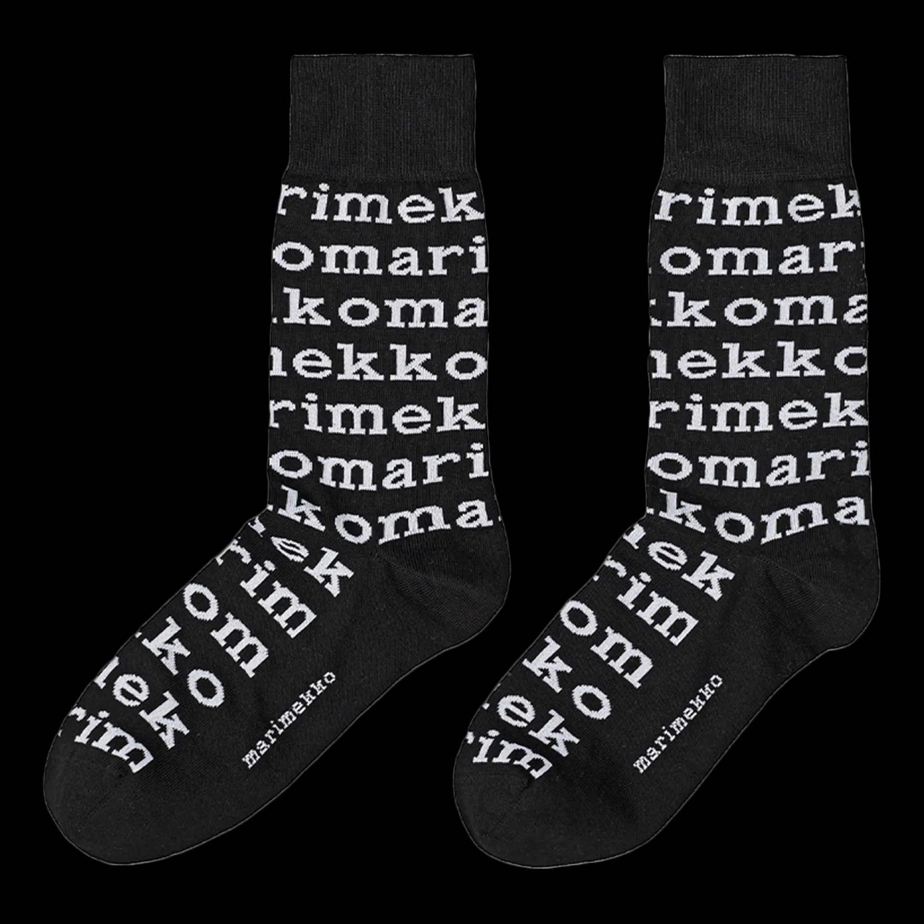Step into everyday comfort with a graphic edge in the Marimekko Kasvaa Logo Socks. These ankle socks feature the bold Marimekko logo pattern in a classic white on black palette, adding a playful yet modern touch to your wardrobe. Made from a soft cotton blend with stretch, they offer a snug fit that’s ideal for both lounging and on-the-go wear.