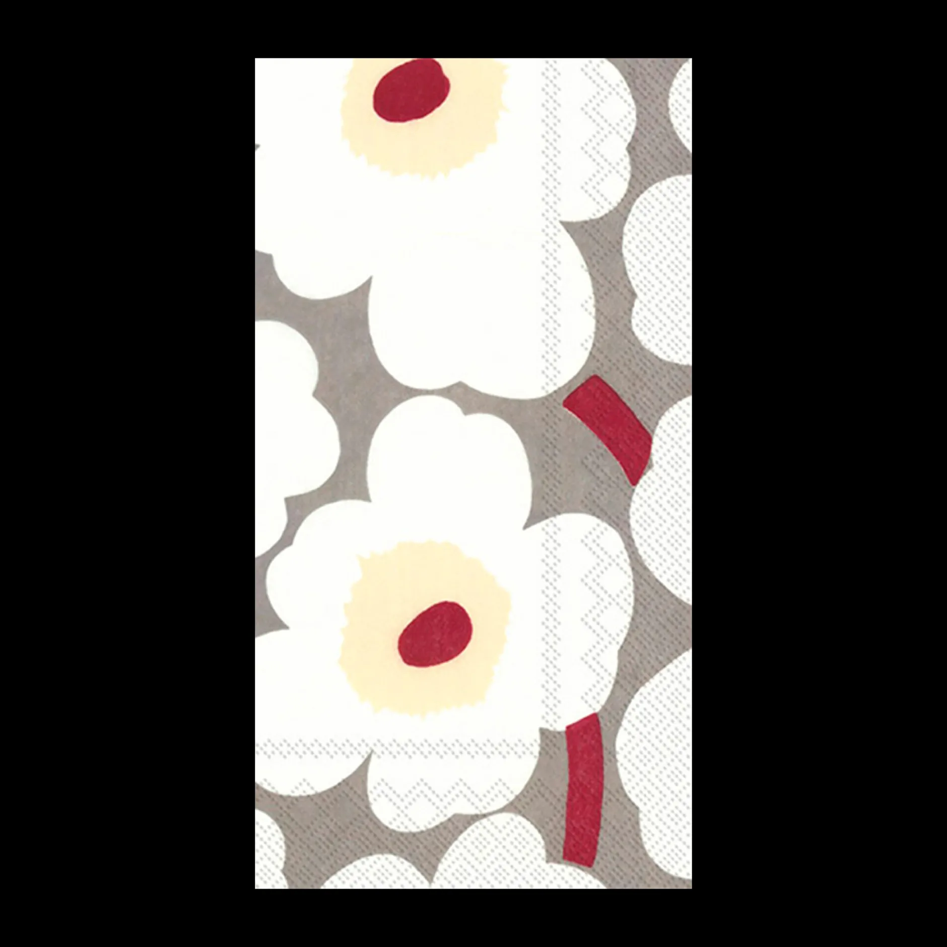 This pack of 16 Marimekko paper buffet napkins featuring the Unikko pattern in a white, red and yellow color trifecta is sure to bring joy to your table.