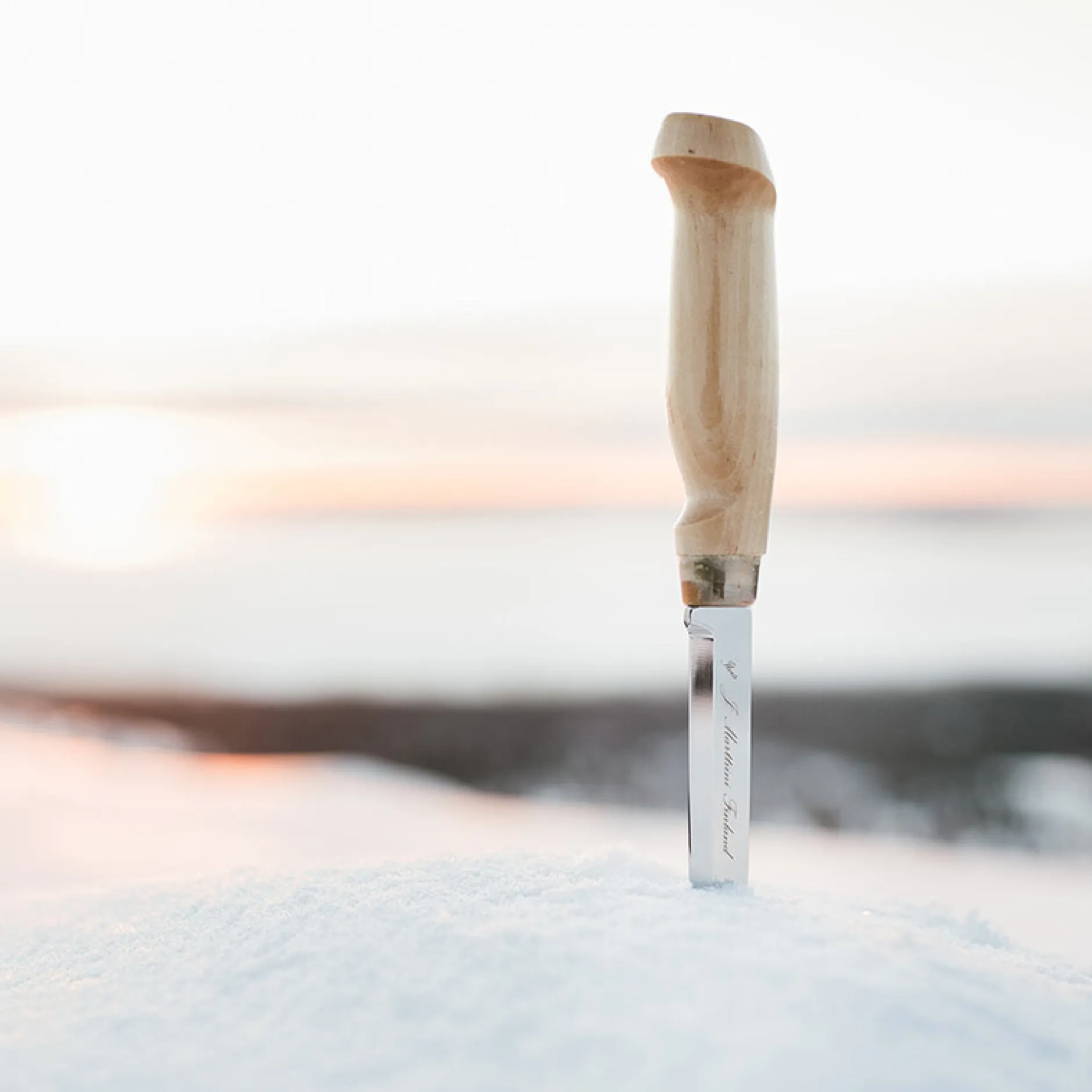 The 4.33″ stainless steel blade is known for its dependable sharpness, while the smooth varnished birch handle offers a lightweight, comfortable grip. Its simple elegance reflects Marttiini’s northern roots and thoughtful craftsmanship.
