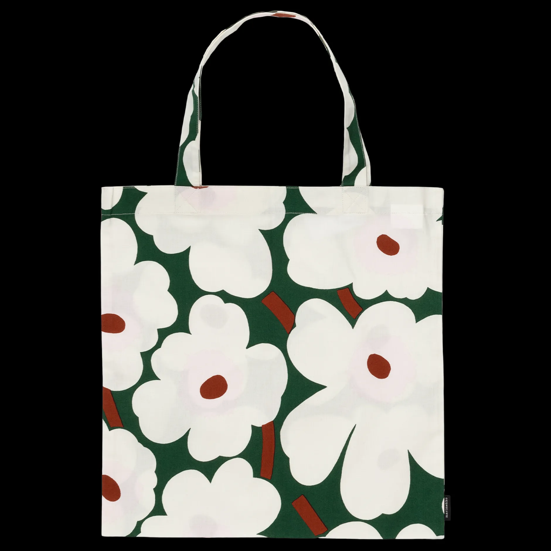 Carry a piece of iconic design with the Marimekko Unikko Cotton Tote Bag, featuring the bold Unikko pattern in green, off-white, and pink. Made from high-quality cotton, this durable tote is printed in Helsinki, ensuring each bag showcases the beauty of Marimekko’s signature floral design. Sewn using the full width of the fabric, each bag is unique, with slight variations in the pattern placement.
