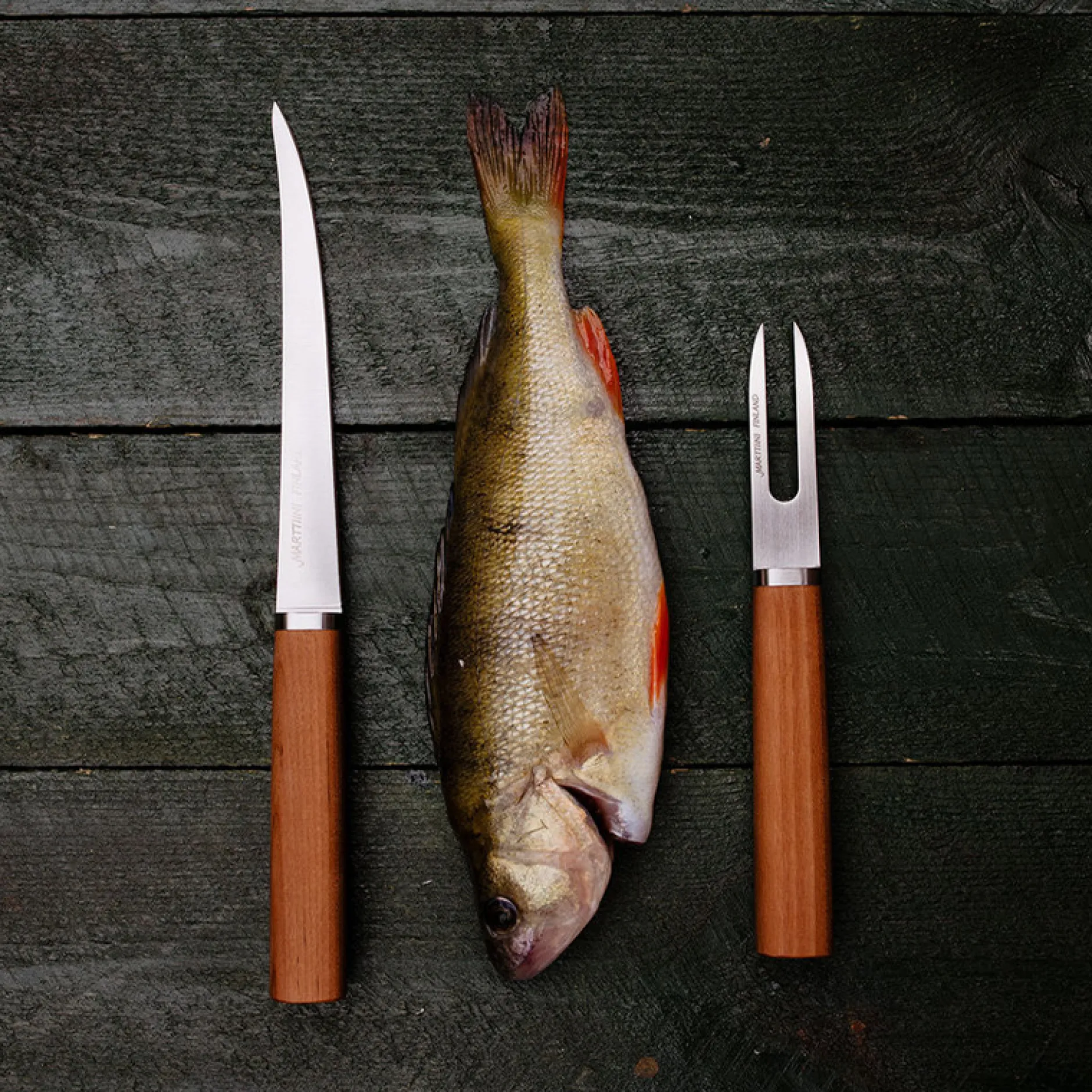 Part of the Cabin Chef series by acclaimed designer Harri Koskinen, this knife features a flexible, high-quality stainless steel blade (8Cr14MoV) that glides effortlessly through fish for clean, precise cuts. The handle, crafted from Finnish thermally modified birch, offers a warm, natural feel and excellent grip—even in wet conditions—thanks to its matte waxed finish.