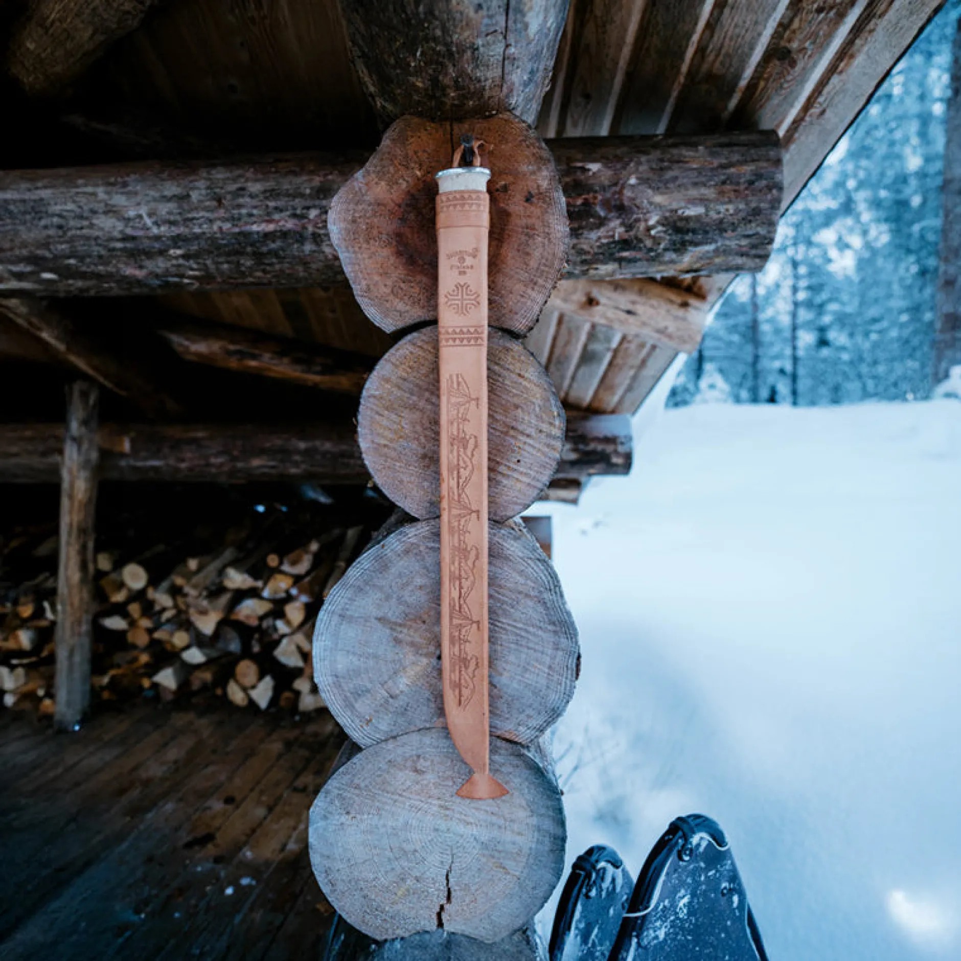 Striking, ceremonial, and unmistakably Finnish, the Marttiini Lapp Knife 280 is more than a tool—it’s a showpiece. Measuring nearly half a meter long, this grand knife commands attention with its sheer scale and traditional Lapland detailing etched into both the stainless steel blade and richly toned leather sheath.