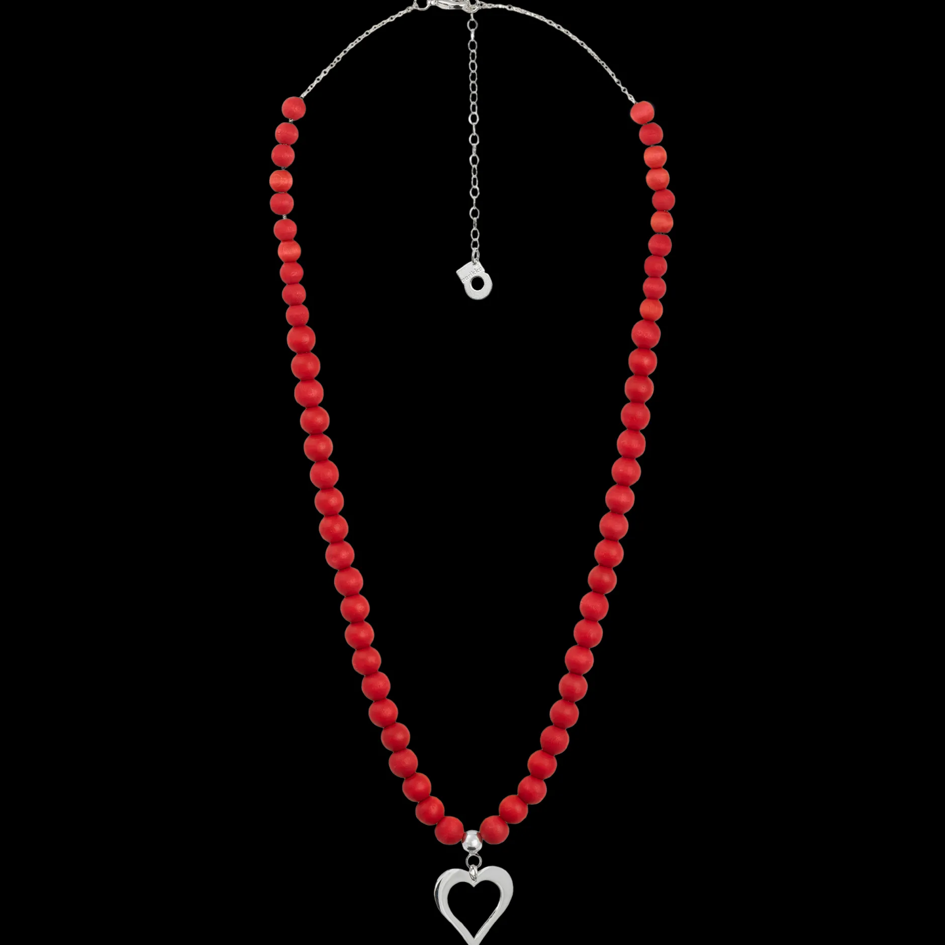 Aarikka Heart Necklace in red is hand-dyed necklace boasts wooden beads and a symbolic heart in the center, representing the purest form of affection. Its effortless elegance and heartfelt design make it the ideal present for expressing love.