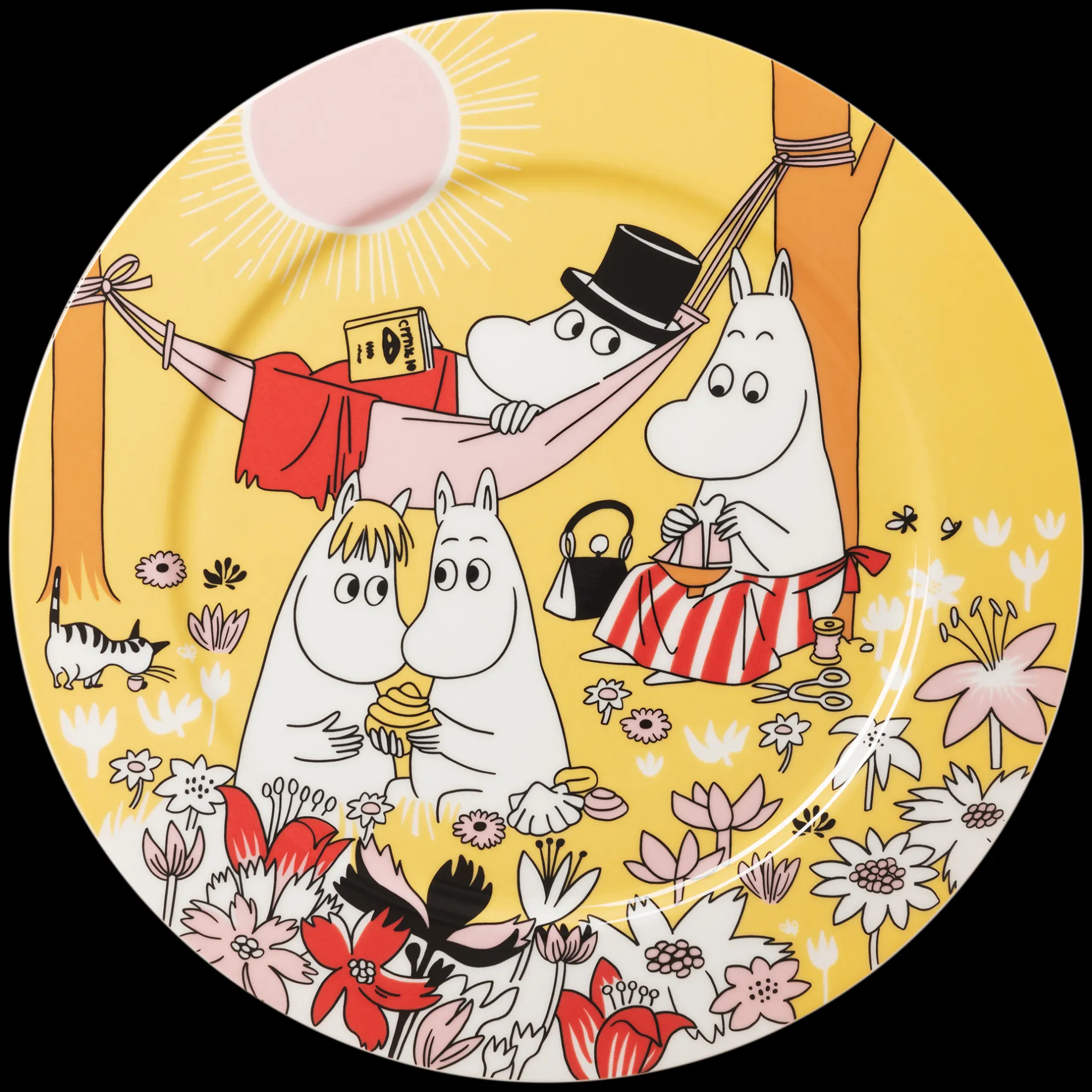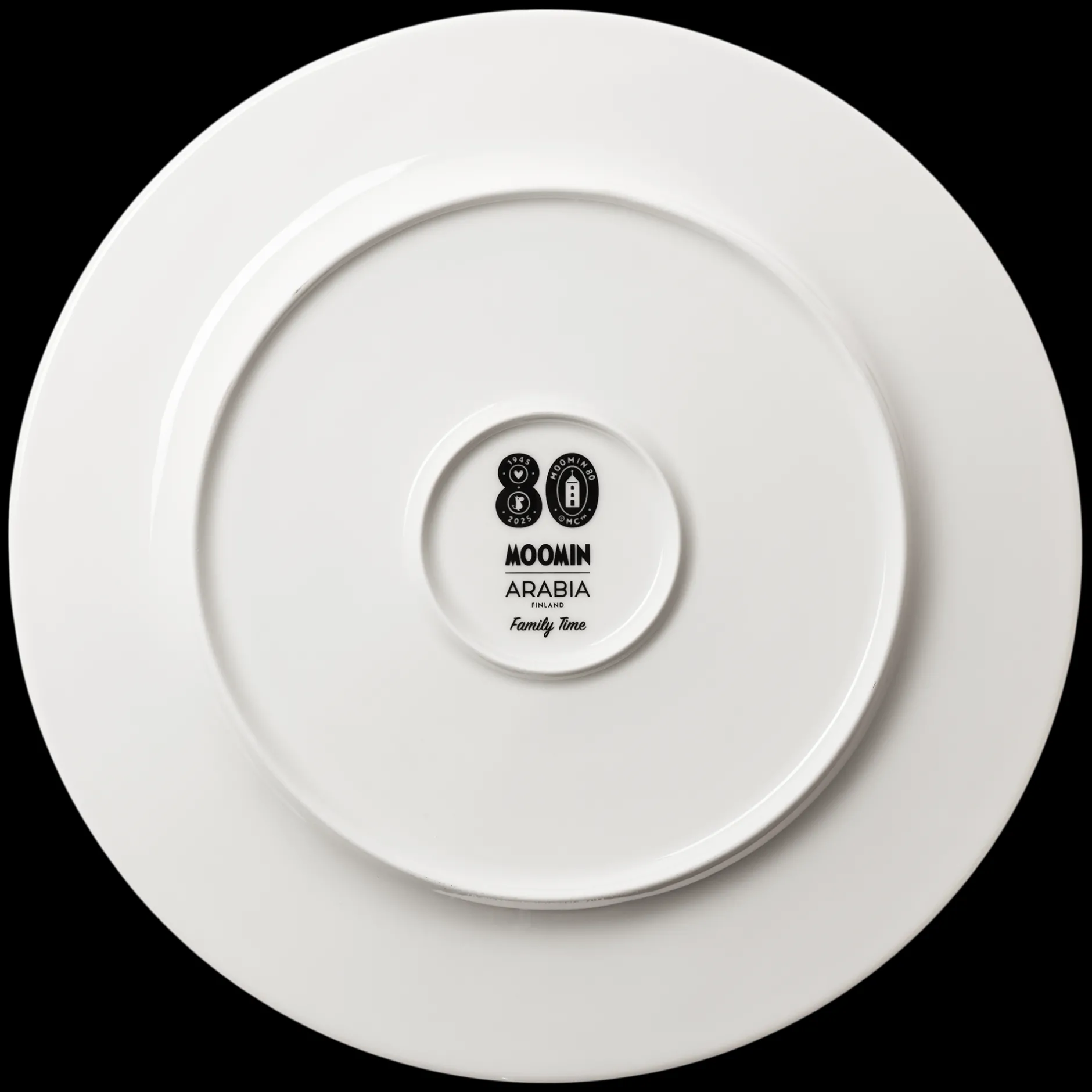 The Arabia Moomin Family Time Serving Plate beautifully captures the warmth and togetherness of the Moomin family. Inspired by the 1955 comic Moomin and Family Life, the illustration portrays a heartfelt reunion in front of the Moominhouse—a celebration of love, belonging, and shared moments. Designed in Finland and crafted from durable vitro porcelain, this 11.75” plate is both functional and collectible, featuring the exclusive Moomin 80th Anniversary stamp. Its inviting colors add a cheerful touch to any table setting, making it a meaningful addition for Moomin fans and families alike.