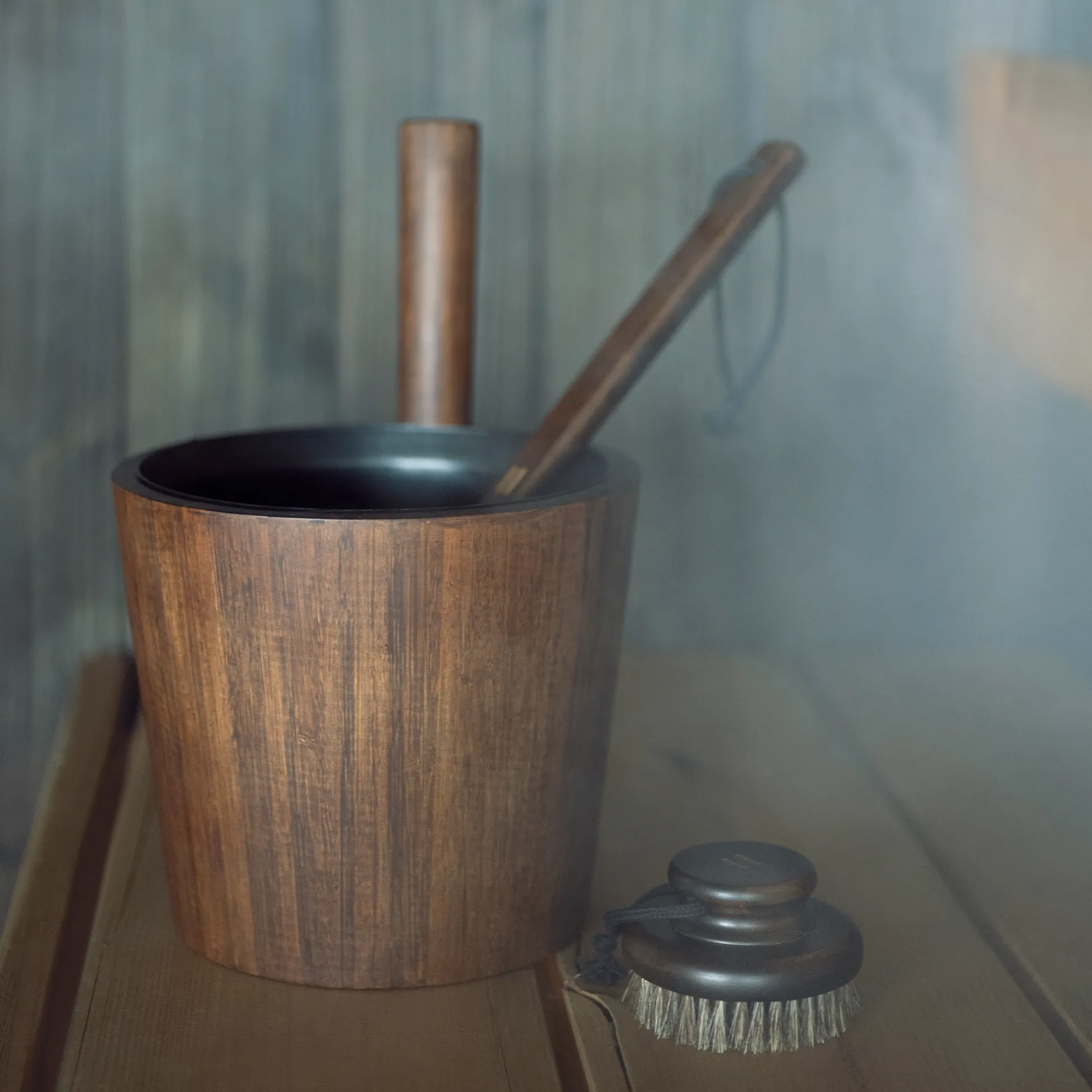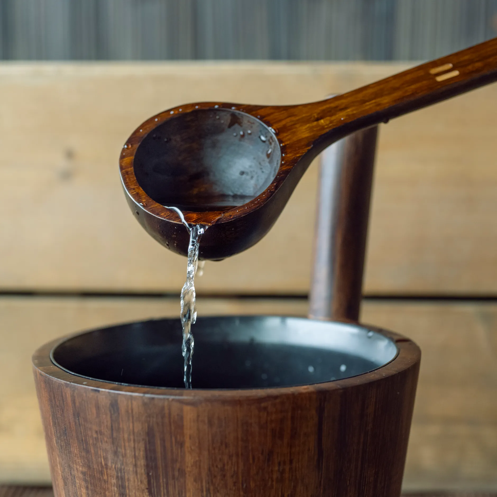 Enhance your sauna experience with the Rento Dark Bamboo Sauna Ladle. Crafted from solid bamboo, this modern Finnish-designed ladle complements sauna interiors with its natural beauty. Measuring 16.5 inches in length, it features a deep scoop that holds the perfect amount of water for creating soothing steam. Its ergonomic handle provides a comfortable grip, making it an essential tool for any sauna ritual. Durable and stylish, this ladle brings both function and elegance to your sauna experience.